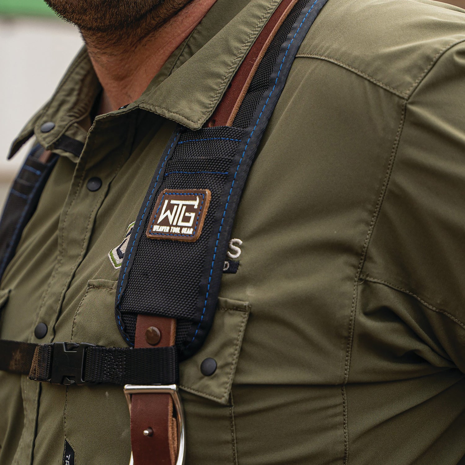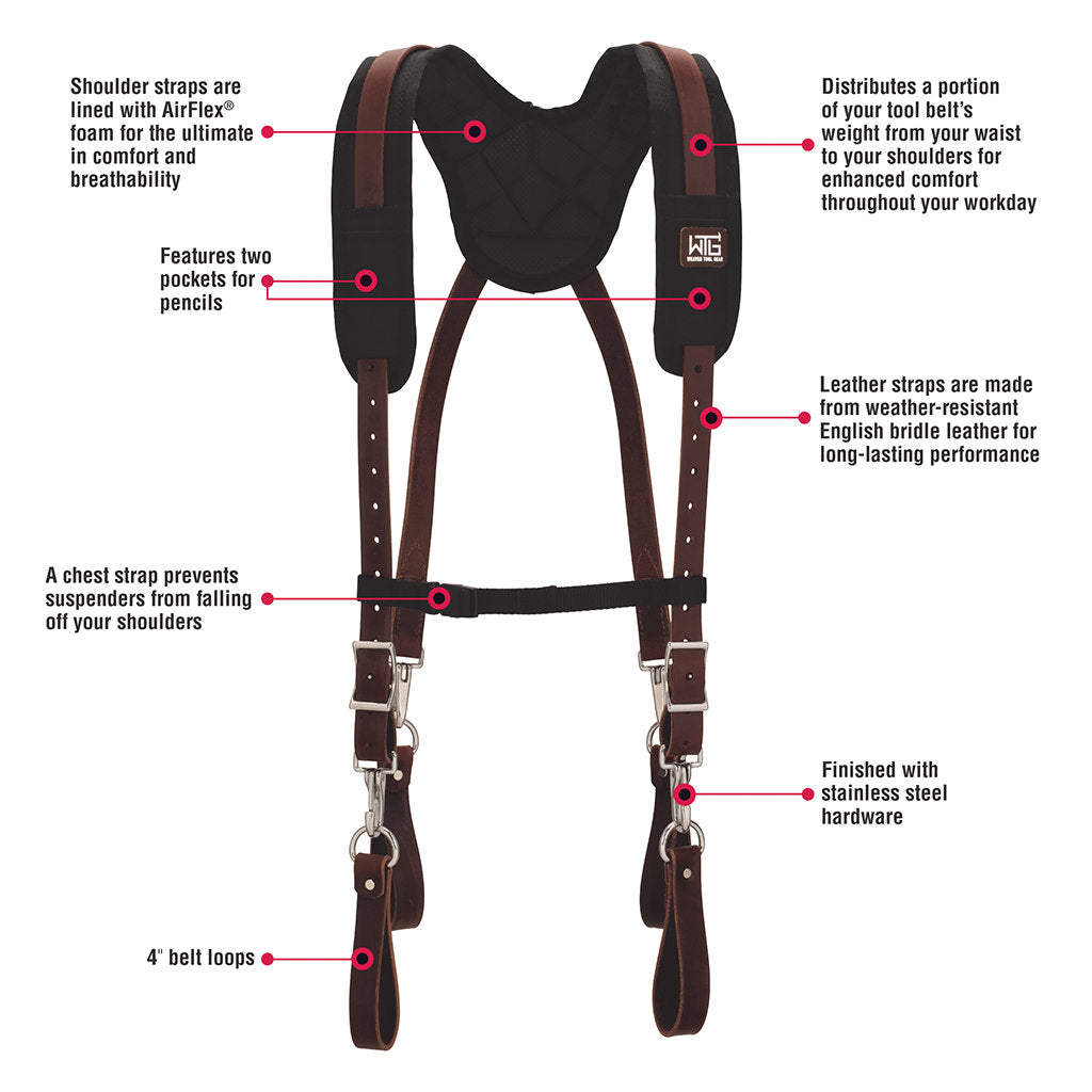 - Distributes a portion of your tool belt’s weight from your waist to your shoulders for enhanced comfort throughout your workday